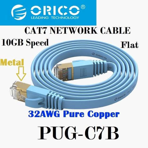 - Orico CAT7 Network Cable Flat 1Meter, Light Blue