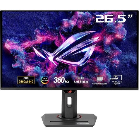 - شاشة ألعاب ASUS ROG Strix OLED XG27ACDNG مقاس 27 بوصة، 360 هرتز، 0.03 مللي ثانية، دقة 2K، HDR400، مزودة بمنفذ HDMI 2.1 وUSB-C بقوة 90 واط، KVM، باللون الأسود