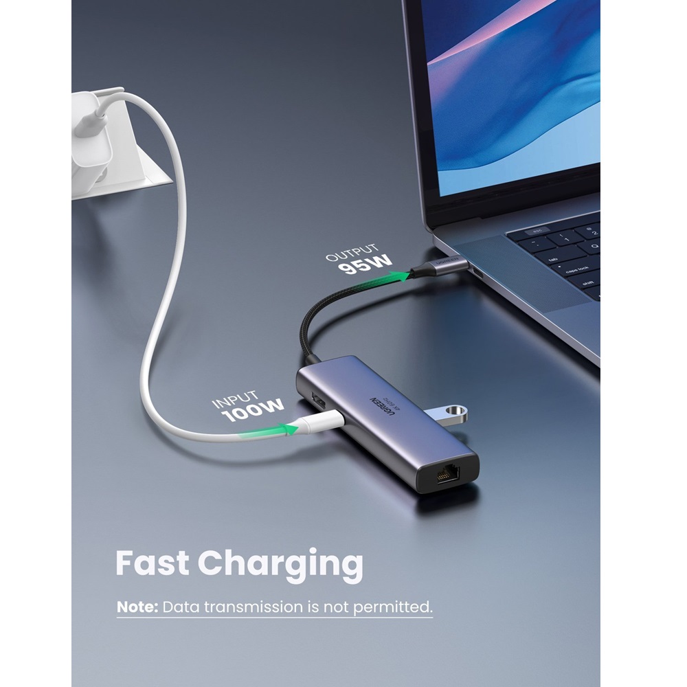 UGREEN اتصال 7 في 1 شحن بقوة 100 واط / عرض بدقة 4K@60Hz / منفذ RJ45