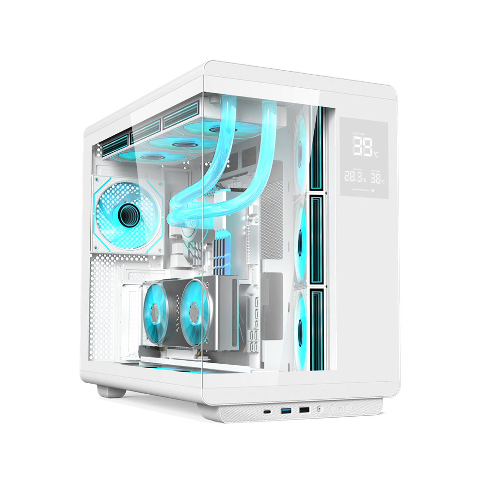 أيسر U600W هيكل حاسوب مكتبي متوسط الحجم للألعاب – أبيض (7 مراوح)