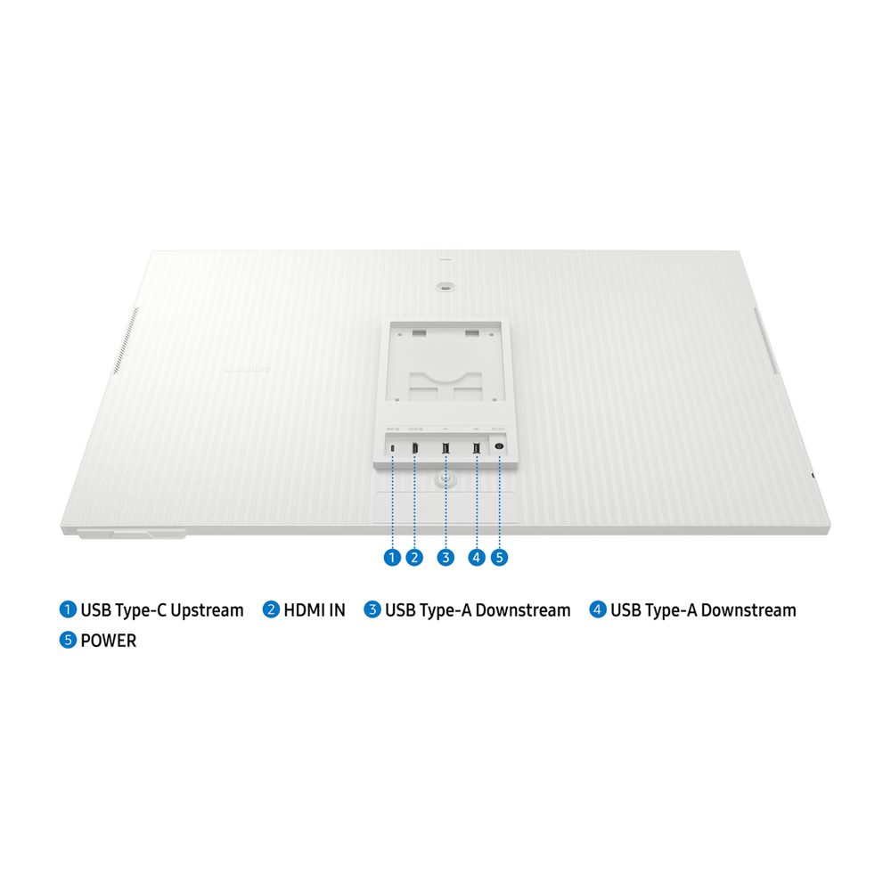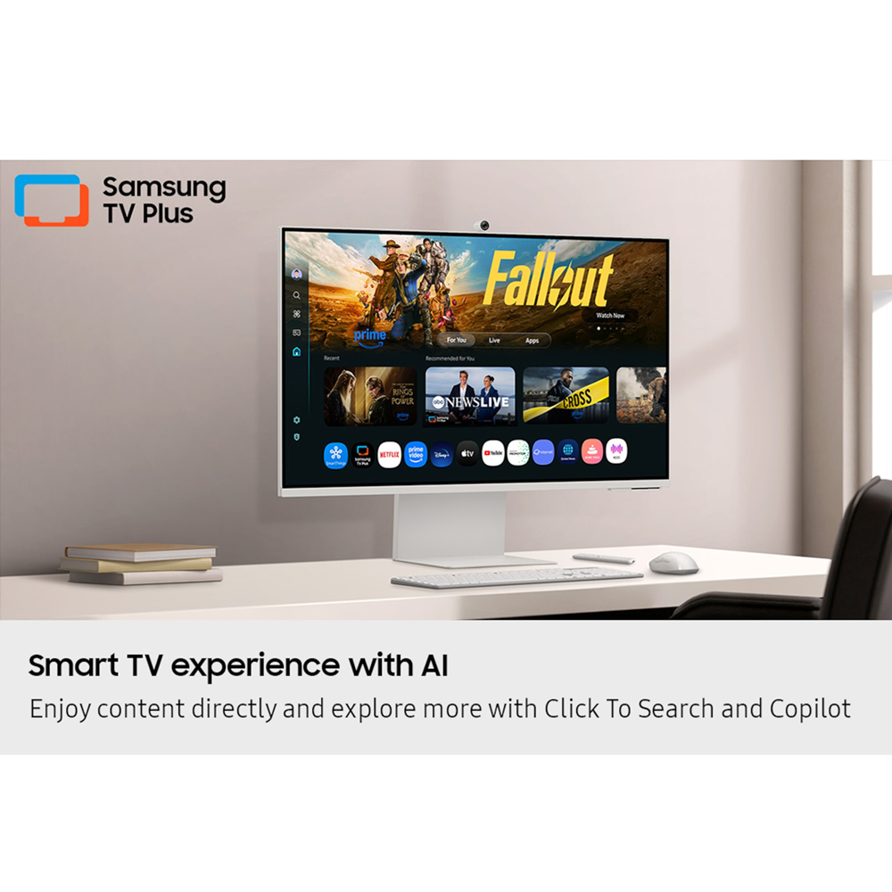شاشة سامسونج الذكية 32 بوصة M8 FM801 Vision Ai – دقة 4K، معدل تحديث 60 هرتز، تقنية HDR، لوحة VA، تغطية sRGB، منفذ USB-C بقدرة 65 واط، مدمجة بسماعة وكاميرا وميكروفون – باللون الأبيض الدافئ