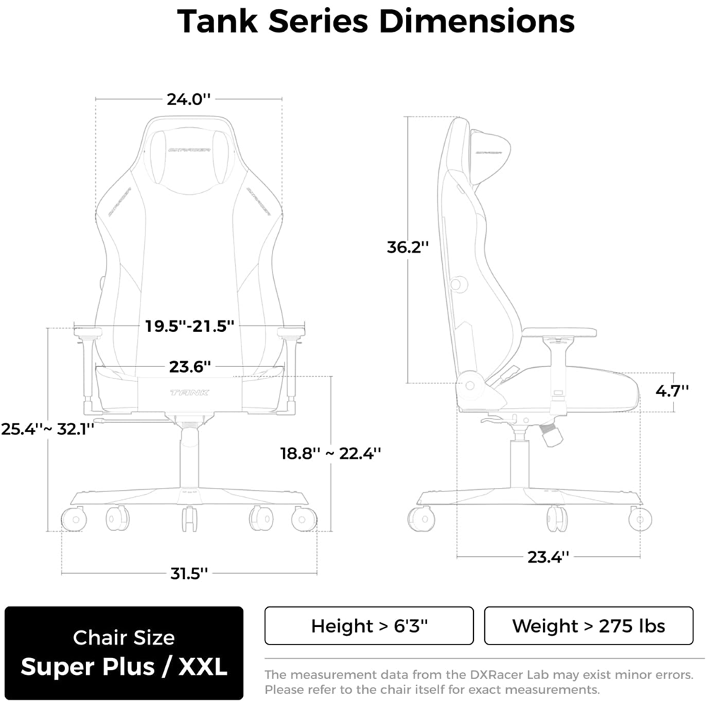 كرسي ألعاب DXRacer Tank XXL – باللون أسود