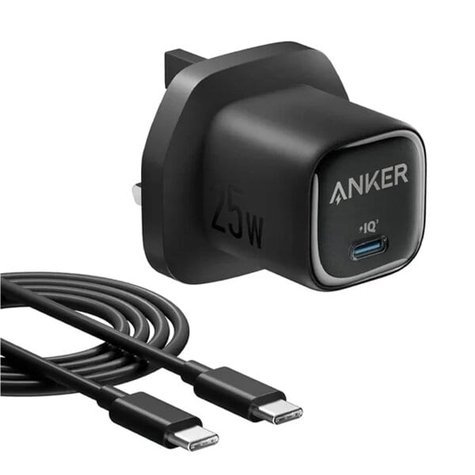 شاحن Anker بقدرة 25 واط مع كابل USB-C إلى USB-C – أسود