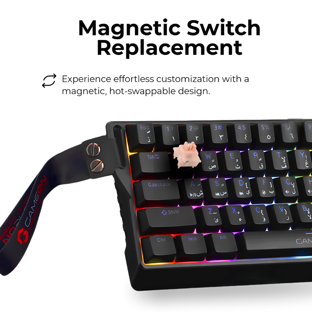 • GameOn MAGPRO Series 1K8RS 60% RGB Magnetic Mechanical Wired Gaming Keyboard, Pink Switch – English/Arabic
